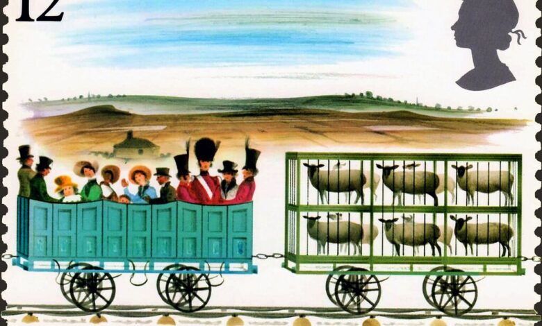 La escena del sello, aunque simbólica más que literal, ilustra cómo los primeros ferrocarriles británicos integraban funciones múltiples —pasajeros, carga, correo y animales— en una misma línea, anticipando una transformación profunda en el comercio y la movilidad rural-urbana.”