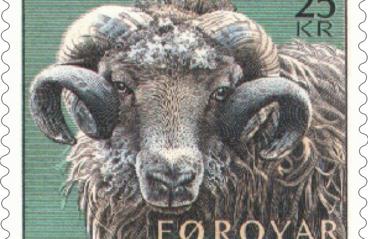 Desde 1919 han circulado en las Islas Feroe un total de 1.471 sellos, de los cuales ocho están dedicados específicamente a los ovinos, una cifra llamativamente baja para un territorio cuyo propio nombre alude directamente a esta especie. Tras la creación de Postverk Føroya en 1976, el Departamento de Sellos Postales asumió plenamente la gestión de las emisiones, entre ellas la del 19 de marzo de 1979, catalogada en Yvert & Tellier como FO 36. Esta estampilla, de 33 × 30 mm, presenta el imponente retrato de un carnero, símbolo tradicional del archipiélago, y es reconocida mundialmente como “The Ram”, una de las piezas más emblemáticas y apreciadas por los coleccionistas de la filatelia feroesa.