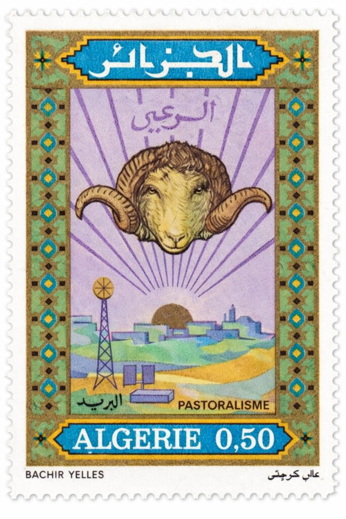 En conjunto, las estampillas argelinas muestran una ganadería ovina que constituye un pilar de la economía rural tradicional, profundamente integrada al territorio, al clima árido y semiárido, y a las prácticas culturales del mundo pastoril, en un país donde el Sahara domina gran parte del paisaje y condiciona históricamente los sistemas productivos.