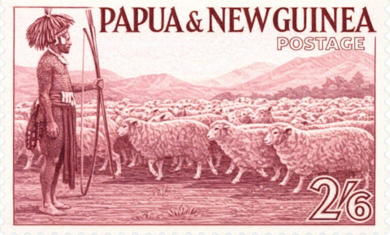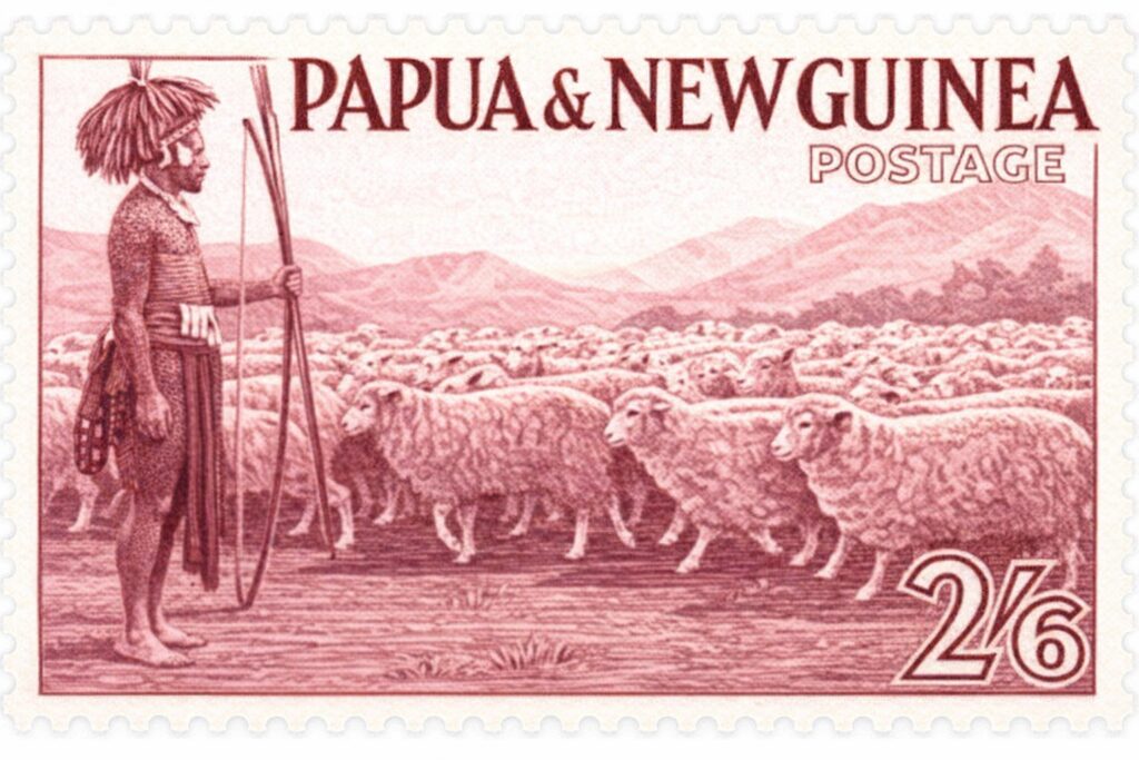 Este sello de 1952 constituye un valioso testimonio de los intentos de implantación de la ganadería ovina en Papúa Nueva Guinea, reflejando una realidad productiva incipiente que no logró consolidarse en el tiempo.